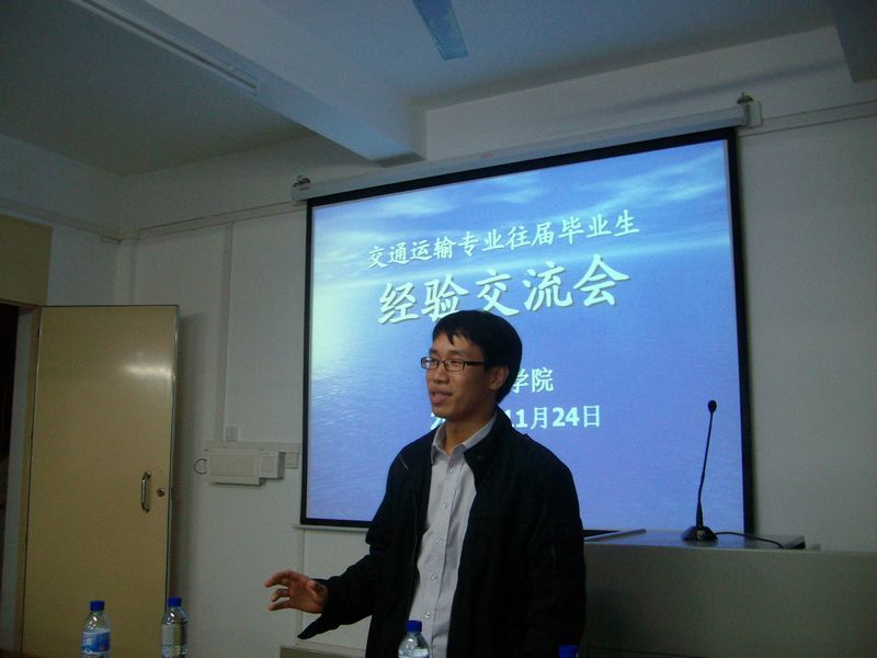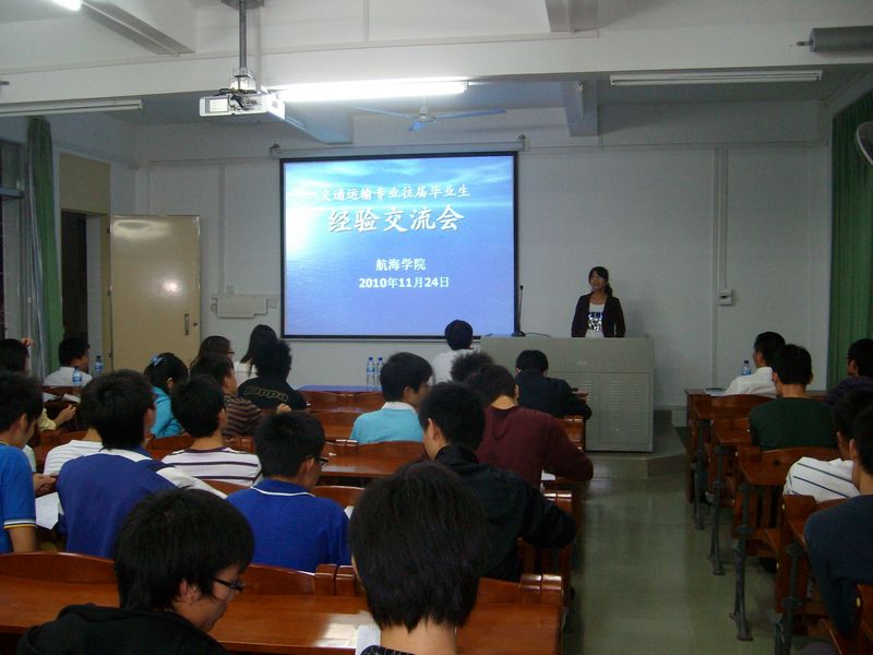 交通运输专业往届毕业生回校给08级交通运输专业同学作经验交流会。交流会在霞山校区教学楼302课室举行,其时交通运输08级同学正在湛江港集团进行为期两个星期的实习。航海AVJB