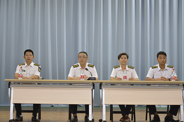 张懿对全体航海类专业同学提出三点要求:一是强化纪律观念。没有规矩不成方圆,尤其是航海类专业学生培养的特殊性,更是要树立坚定的纪律观念,以适应国防建设和海上运输事业发展的需求;二是强化标准意识。干净简洁的宿舍内务,笔挺整齐的院服、雷厉风行的队列行动,才是航海类专业学生必须具备的基本素养;三是要找准人生目标。同学们应当怀揣着希望和梦想、志存高远,严于律己、争创优先、不断挑战超越自己,创造未来。