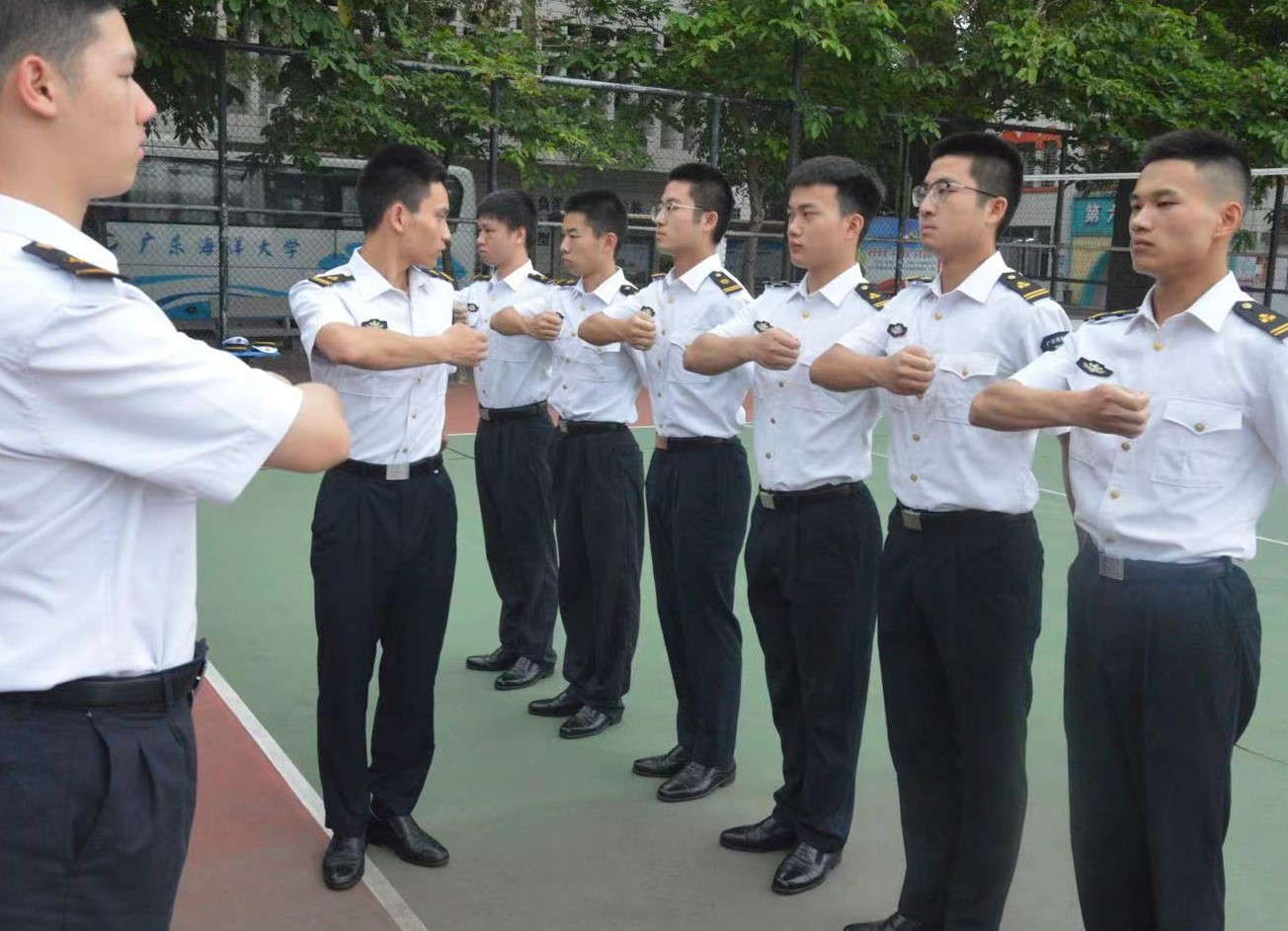 国旗班”每日坚持训练,训练中,组训班长、轮机1192优秀退役大学生许健对每一项科目进行连贯动作示范、分步讲解,队员们精神饱满、热情高涨,全身心地投入到刻苦训练当中,一丝不苟完成每一项训练内容。严格的训练不仅锻炼了“国旗班”同学过硬的军事素质,更坚定了他们严格自律的理想信念,锤炼了吃苦耐劳的意志品质,为广大同学树立了鲜明的旗帜和模范的榜样。