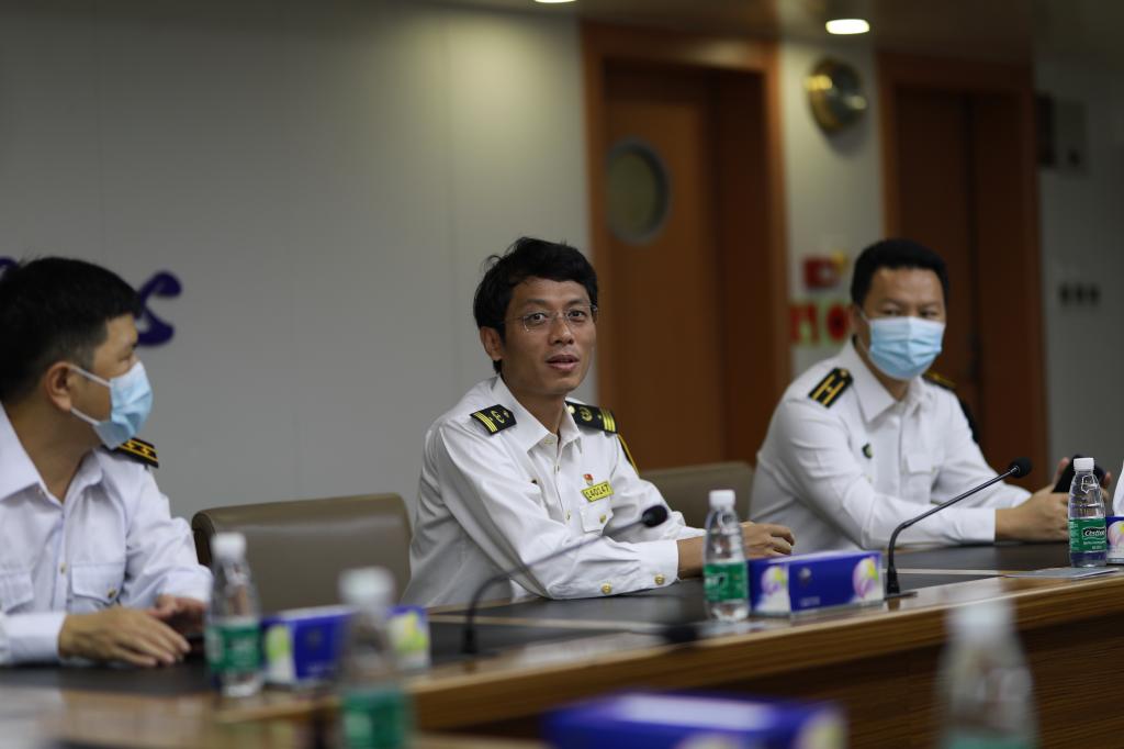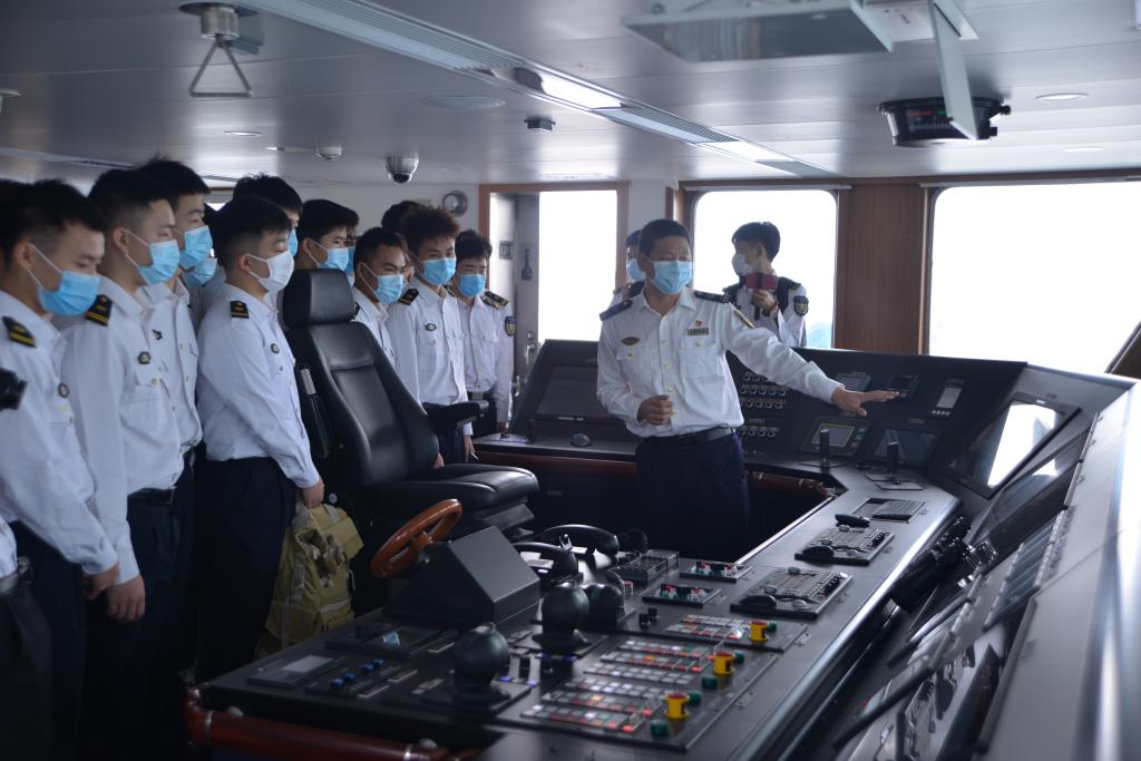 在杨鹍鹏等的带领下,学生有序参观了“深海01”轮的指挥塔台、轮机舱室、执法人员生活区等,观看了深圳海事局宣传视频,了解航海仪器仪表的配备和功能、船舶主机和发电机的功能参数、集控室仪表船舶相关技术参数等,国内首个锂电池动力船舶机舱、全自动化船舶综合电力系统给同学们留下了深刻印象。参观过程中,深圳海事局领导对于同学们的提问给予耐心细致回答,同学们兴趣高昂,纷纷表示获益匪浅,不仅近距离参观了船舶仪器设备,学习了相关专业知识,了解了海上执法人员的工作和生活情况,更激发了投身海洋强国建设的决心。
