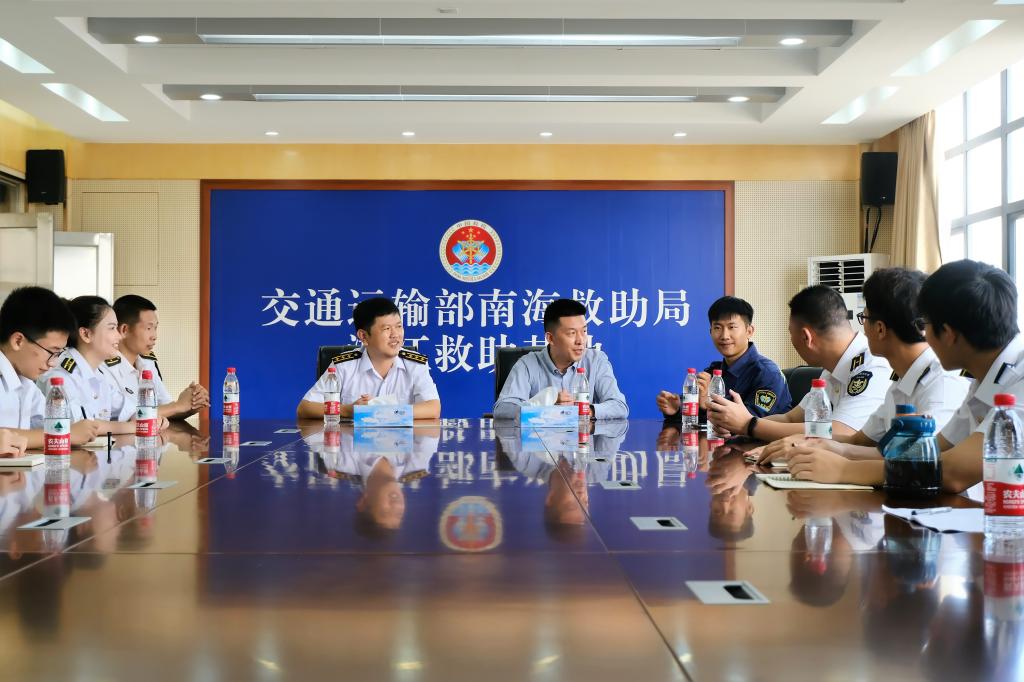 党委副书记、纪委书记齐昊,半军管副大队长刘抒睿、江涛,辅导员刘宇然一行带领陆上1191班全体学生以及半军管学生骨干等40余人一同前往南海救助局开展“海运有我一我与校友面对面”活动。AVJB