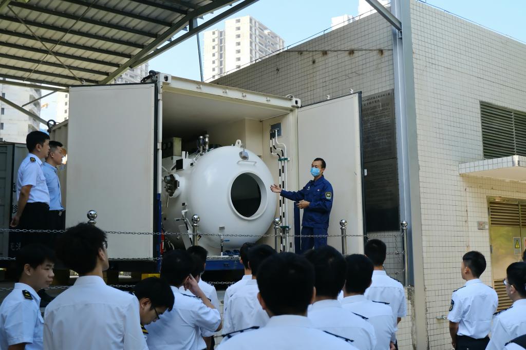 牛念喜校友带领同学们参观了救助设备室、减压舱等,通过现场观摩,增进了他们对海上救助设备的直观认识和了解。随后,在南海救助局湛江救助基地会议室进行座谈,牛念喜校友等结合自身经历就同学们关心关注的问题进行了热情解答,希望同学们要着眼眼前,做好当下,主动爱校荣校,夯实专业基础,提升专业技能,多维度全面发展,积极投身海洋强国建设。