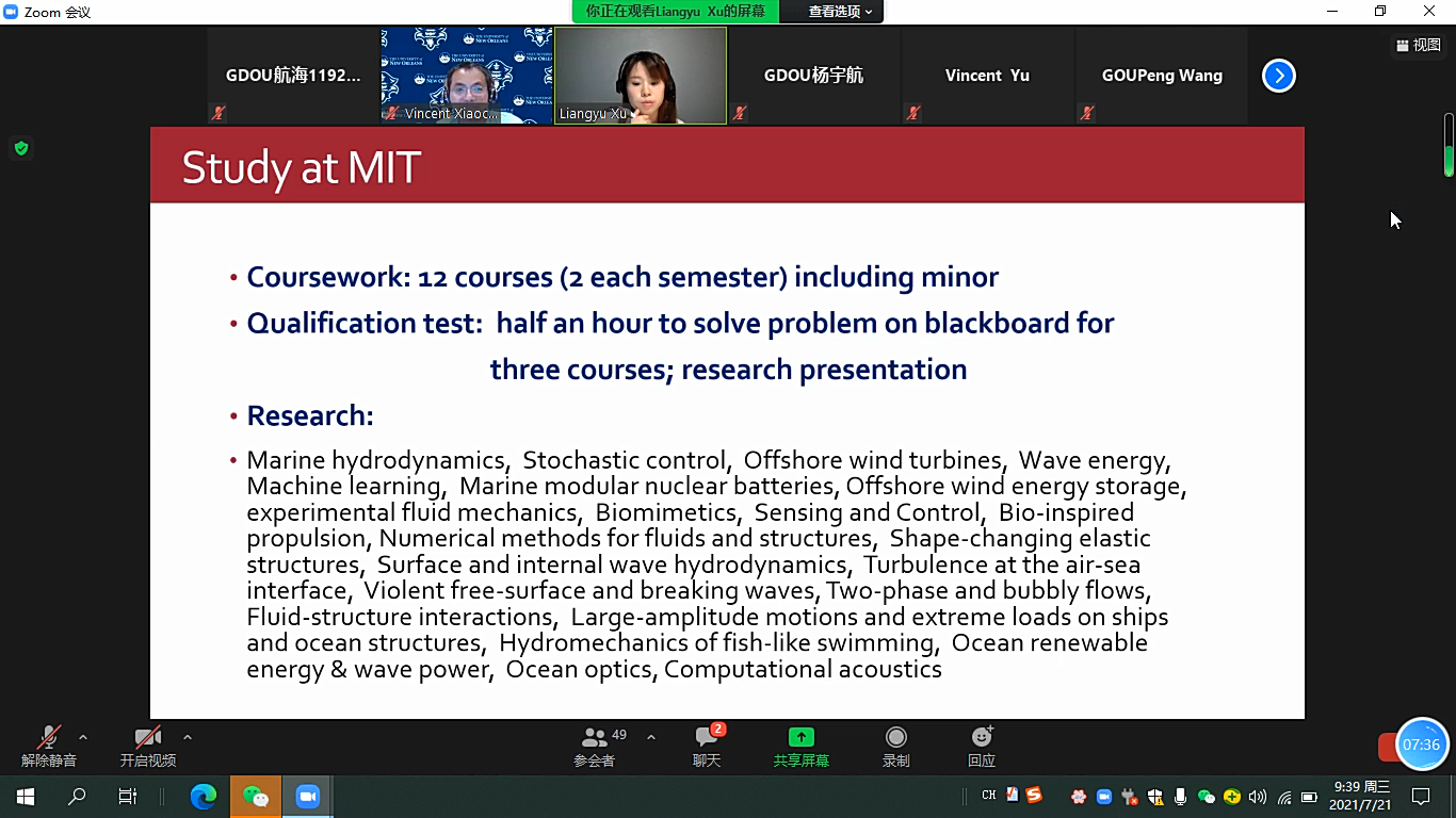 共47位同学的踊跃报名,经过资格审查和面试后,择优录取了30名同学参与此次活动。在我院贾宝柱院长与新奥尔良大学余小川老师的共同努力下,此次暑期线上短期教学活动得到顺利开展。学生在教学参与过程中,积极的向知名教授和工程师学习先进的科学知识与方法,对船海工程领域的发展有了更深入、更全面的理解,开拓了视野和研究思路,提高了英语沟通能力。同学们纷纷表示,海外名校的线上课程有助于明确未来个人发展方向,为后续的就业与深造打下了坚实的基础。