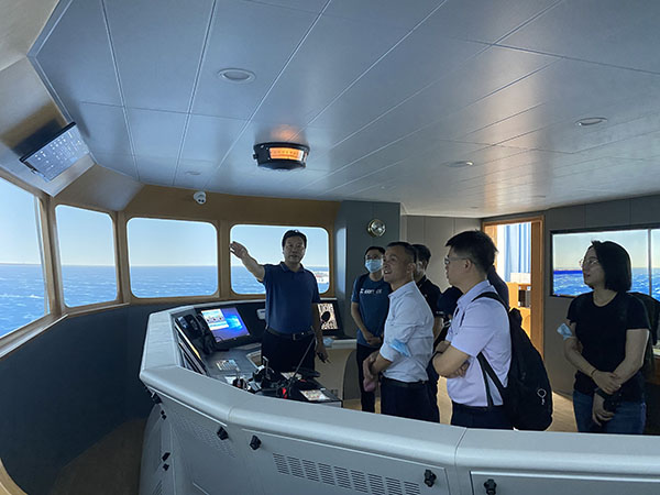 座谈会后,吴昌泰一行参观了航海模拟器、轮机模拟器等实验室。