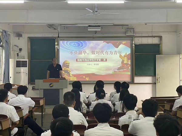 院长贾宝柱以《不负韶华,做时代有为青年》为主题,在海滨校区教学楼201为学生讲授2023年春季学期“思政第一课”,AVJB