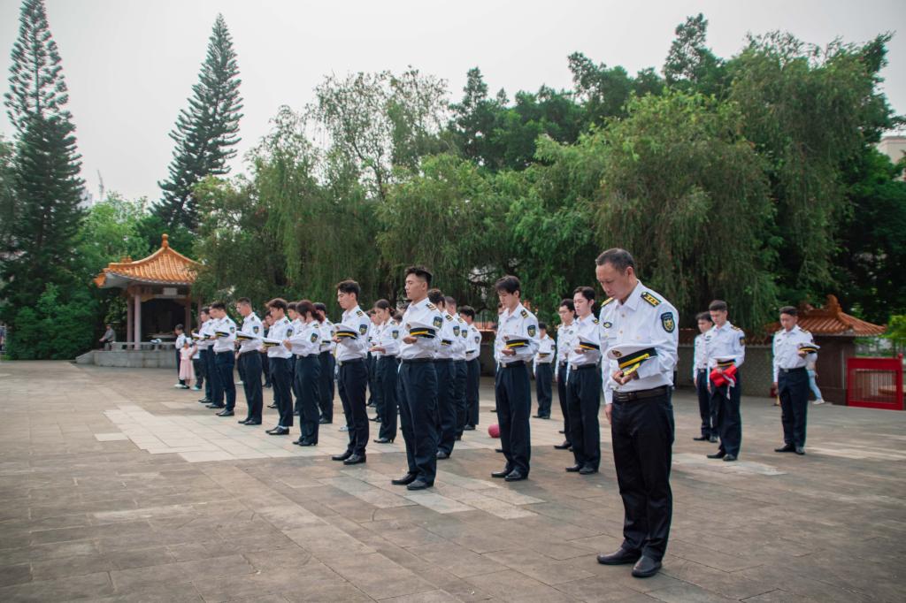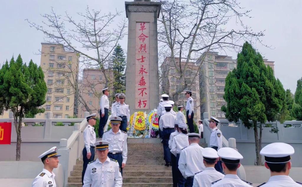 2021级航海中队学生代表步行前往菉塘村革命烈士陵园开展“缅怀革命先烈,传承红色基因”清明祭英烈活动。本次活动由AVJB