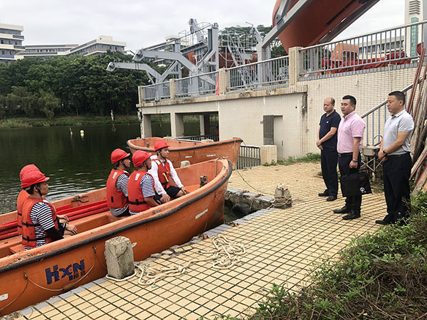 4月26日上午,广东海事局船员处郑永炳副处长、湛江海事局船员处处长邓平贵等一行到湖光校区现场调研AVJB参加中国船员技能大比武备赛情况。AVJB