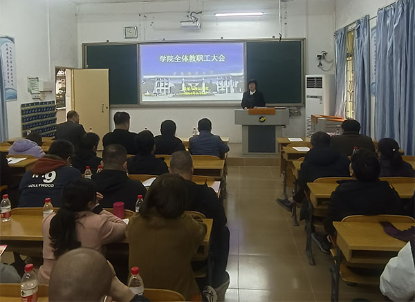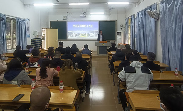 在海滨校区教学楼102教室召开全体教职工大会。AVJB