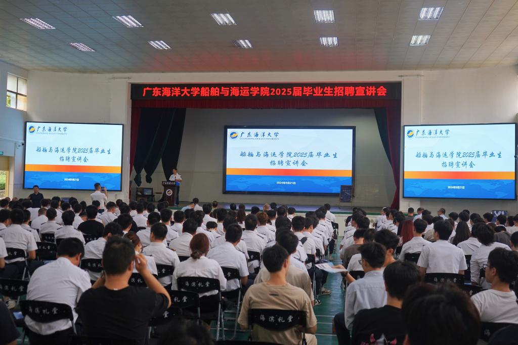及2025届毕业生的整体情况进行了全面介绍。随后,中远海运船员管理有限公司广州分公司、招商局南京油运股份有限公司、福建船政重工股份有限公司等29家用人单位逐一详细介绍了企业概况、岗位需求、职业发展路径等,为即将步入职场的学子们搭建了一个高起点、广视野的就业对接平台。最后,用人单位在分会场与毕业生进行了面对面洽谈交流。