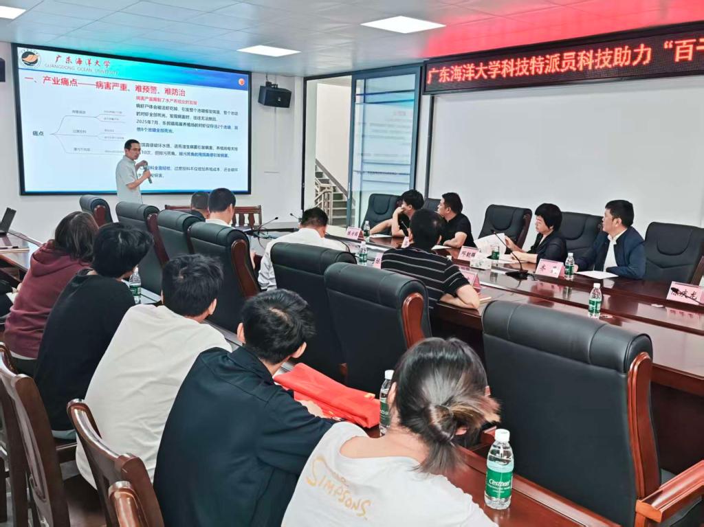 党委书记邓朝晖,正处级辅导员、党委副书记齐昊、研究生党支部书记陈方园以及科技特派员陈庆龙带领科研团队深入遂溪县乐民镇开展科技下乡及党建共建活动。本次活动得到了乐民镇党委书记陈秋强,人大主席李武,广州市越秀区驻乐民镇帮扶工作队队长张松和水产养殖从业人员等的积极响应,共计50余人参加了本次活动。