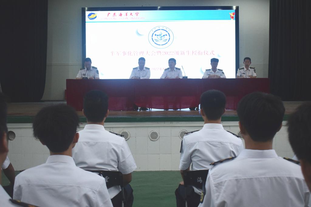 为提高2022级新生对航海类专业实施半军事化管理的认识,着力增强团队凝聚力和集体荣誉感。11月5日上午,AVJB 在海滨校区礼堂举行了AVJB 半军事化管理大会暨2022级新生授衔仪式。AVJB 党委副书记、纪委书记齐昊,副大队长江涛,AVJB 团委书记邵建勋,辅导员郑祯远及2022级各中队同学们出席会议,大会由副大队长刘抒睿主持。