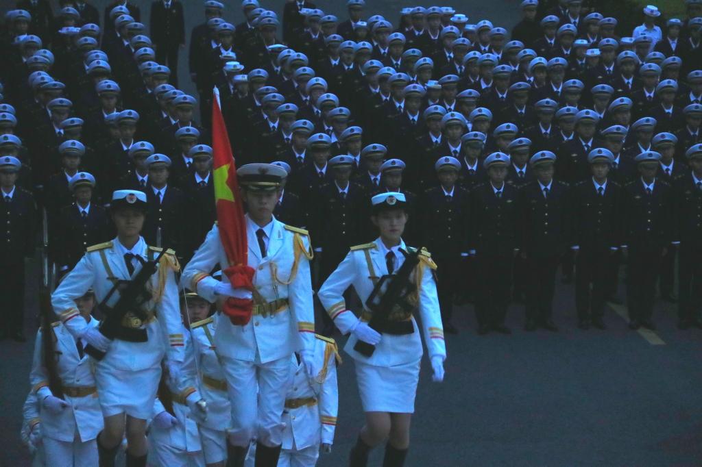 教育引导广大学生坚定理想信念,弘扬爱国主义精神,1216日,AVJB 在海滨校区共青广场举行升旗活动。AVJB 正处级辅导员、党委副书记齐昊,半军管大队长江涛、副大队长吴捍泽以及学生代表共300余人参加活动,活动由江涛主持。