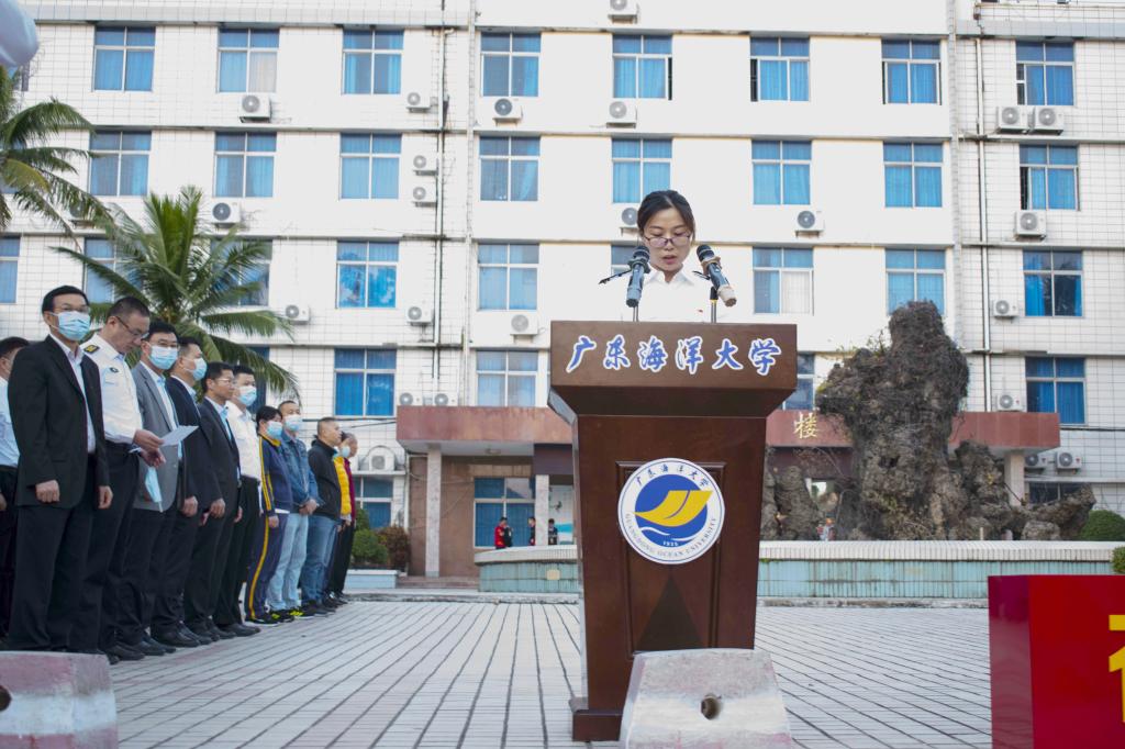 教师代表许媛媛副教授进行了激情洋溢的精彩发言。希望同学们增强“为中华崛起而读书”的志气,积极参与国内一流高水平海洋大学建设,将知识化作为能力,用理论联系实际,让智慧才华挥洒在报效国家、服务社会的抱负中。