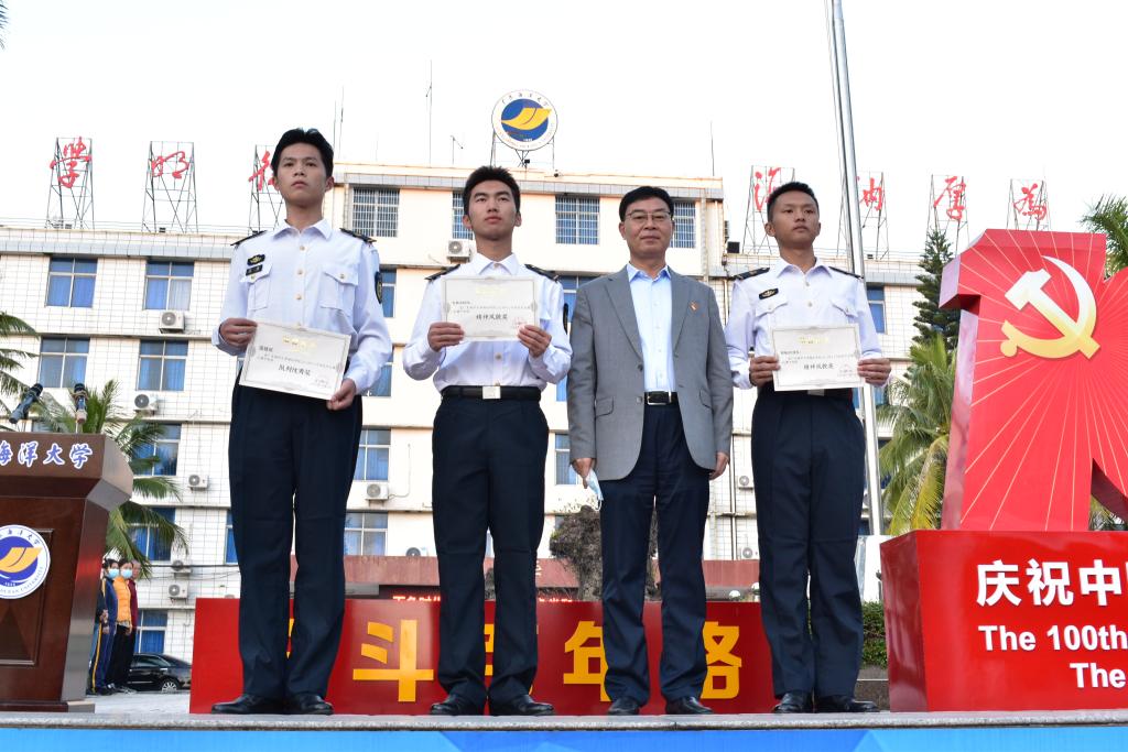 升旗活动中,林常委受邀为AVJB 半军事化管理11月份队列训练先进单位:国旗班、轮机1211区队、船电1212区队进行了颁奖。