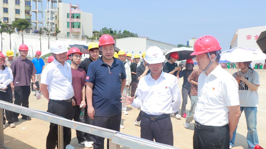 在陈达春的引导下,师生一行深入生产一线,先后参观了露天水平修理船台、浮船坞“琼海1号”、码头出运平台、浮船坞水下搁墩、导航架等设施。同学们在校友揭梓颖的介绍中了解到该基地是全国最大的客滚船修造基地,同学们纷纷表示要不断加强专业理论学习,像校友一样投入到国家重大工程中去,实现自我价值。