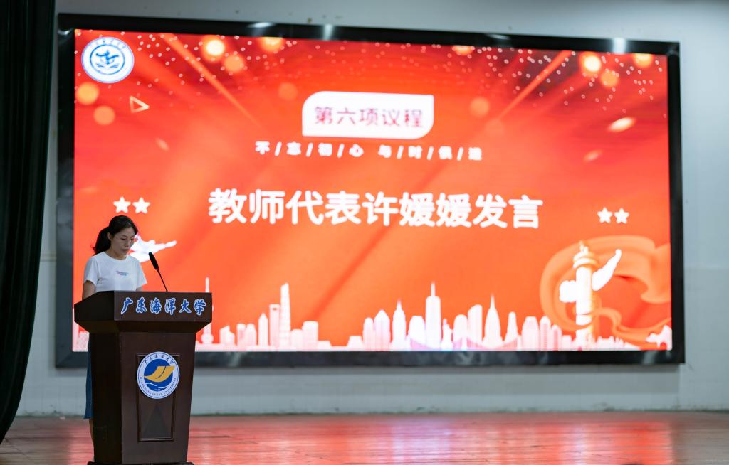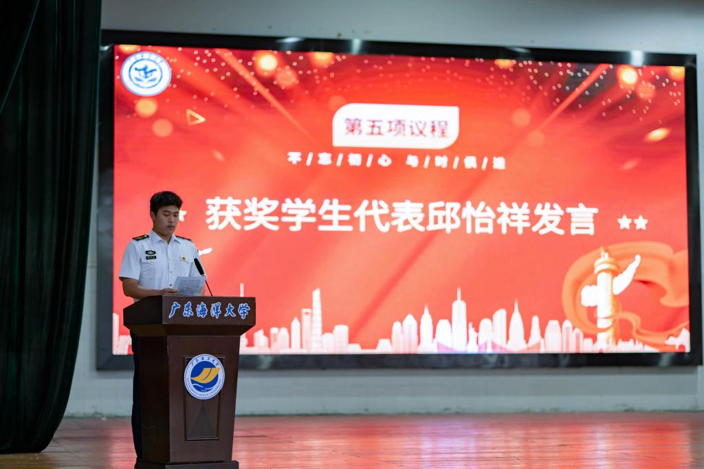 大会在雄壮的国歌声中拉开帷幕,AVJB 学生代表带来诗歌朗诵《南海,我是你岛上的一只水鸟》,抒发爱国主义情怀,展现船海青年昂扬向上的精神面貌。副院长李荣辉教授宣读了表彰决定,号召全院学生以受表彰同学为榜样,勤奋学习,积极进取。