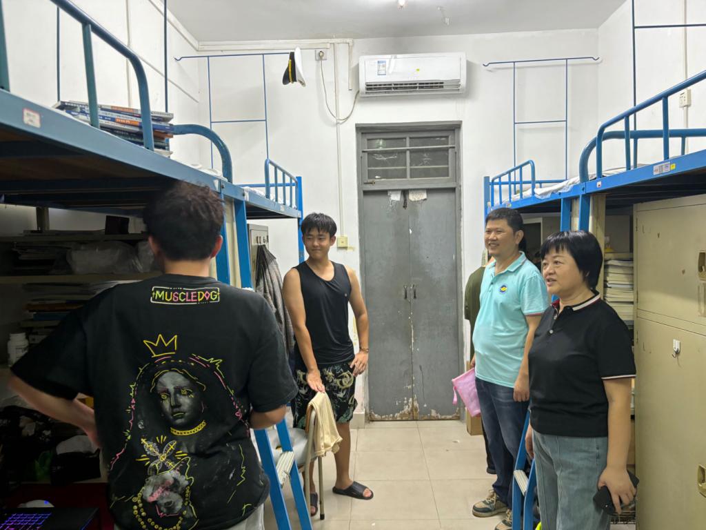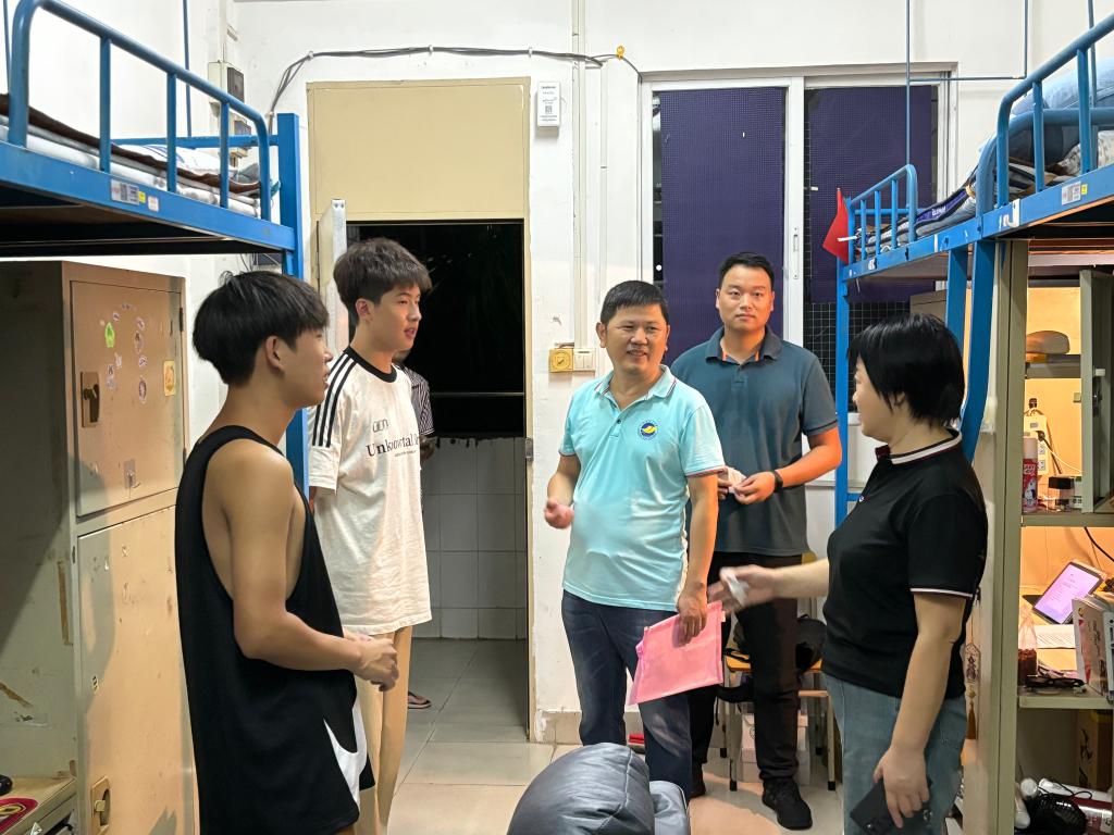 党委书记邓朝晖,正处级辅导员、党委副书记齐昊带领辅导员深入学生宿舍,亲身实地考察,听取学生的意见和建议,确保学生在新学期能够以最佳的状态投入学习和生活。