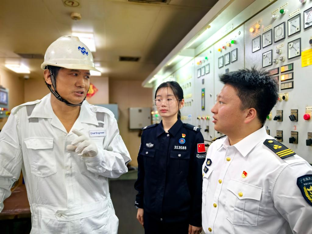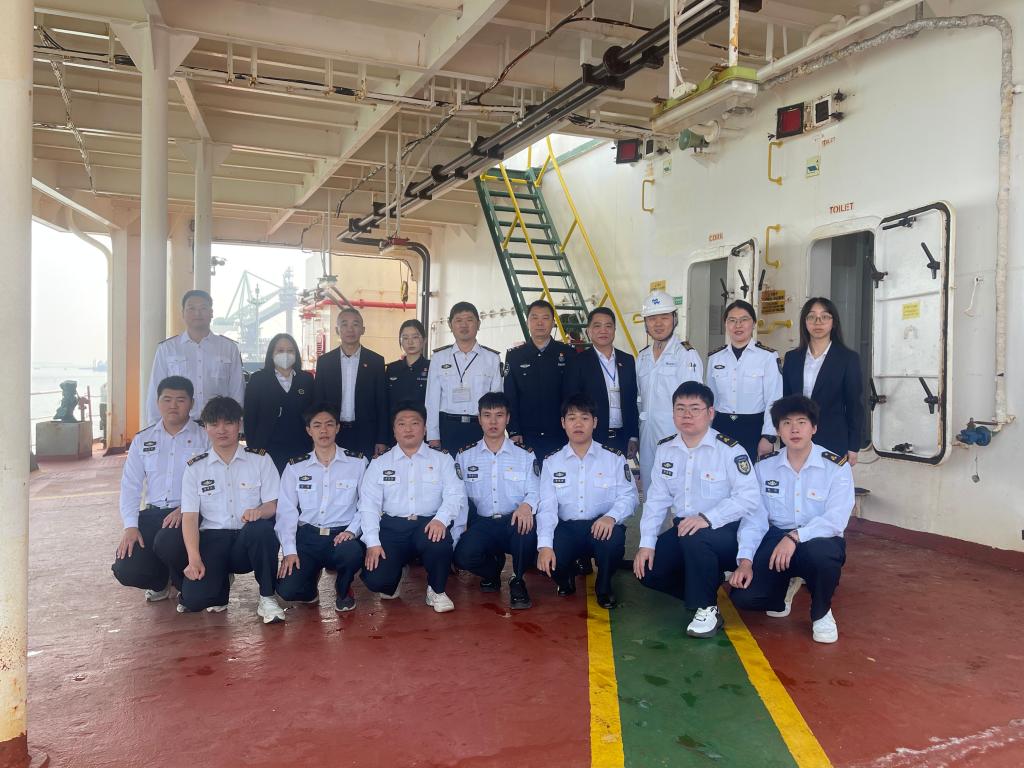 3月20日上午,AVJB 师生代表登上“大秦轮”,开展了一场别开生面的学习交流活动。AVJB 正处级辅导员、党委副书记齐昊、湛江国际海员俱乐部主任梁教珍、湛江出入境边防检查站执勤三队教导员张忠堂等出席活动。