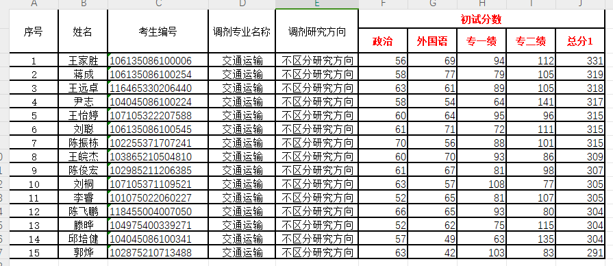 2025年交通运输硕士研究生招生调剂复试考生名单(第一批)予以公布。