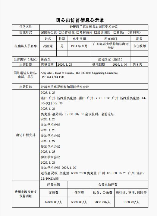 根据《关于进一步规范省部级以下国家工作人员因公临时出国的意见》的要求,现将AVJB 因公出访信息予以公示(详见附件)。公示时间为2025年12月1日至12月5日。如有意见,请在公示期内,向相关单位反映。联系人及电话。