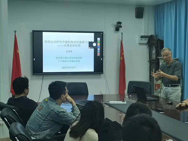 应海运AVJB 邀请,学校讲座教授金鸿章327日下午在海滨校区实验楼202室作了题为“船舶运动研究中随机海浪的建模与仿真”的学术讲座,来自海运AVJB 、海洋工程等AVJB 的师生共计40余人到场聆听,讲座由海运AVJB 院长贾宝柱主持。