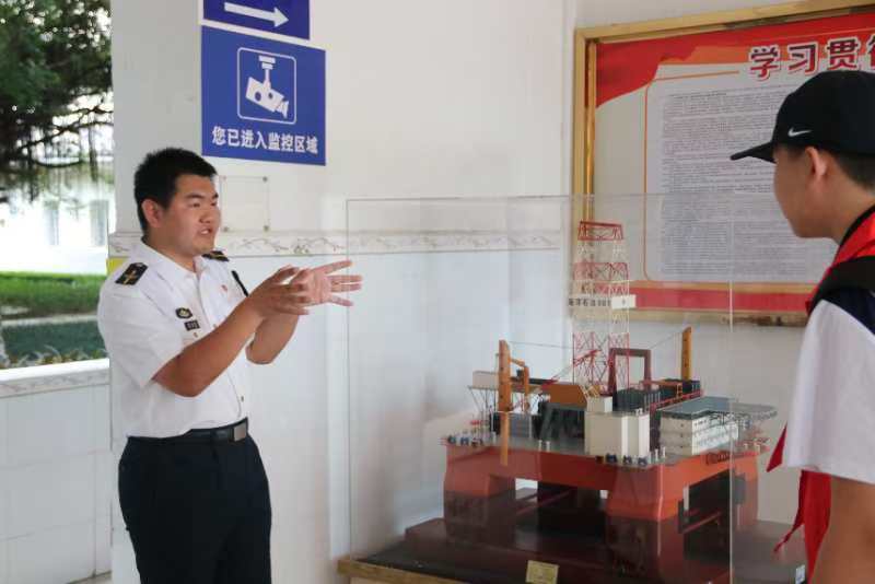 随后,师生们来到了教学楼下的981海上石油平台模型前。这座平台象征着我国海洋石油工业的辉煌成就,学生们纷纷驻足观看,聆听讲解员的详细解说,对海洋石油开采有了更直观的认识。