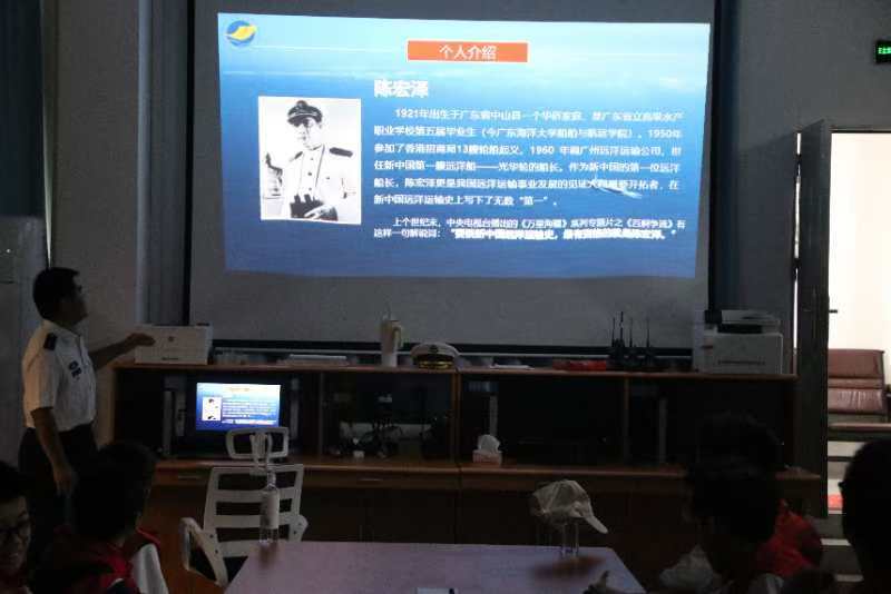 在志愿者的带领下,学生们走进了航海科技与文化科普教育基地。首先,他们在会议室聆听了一场关于杰出校友陈宏泽先生的报告。陈宏泽先生作为航海领域的佼佼者,他的事迹激励着每一位在座的学生。听完报告后,学生们纷纷表示要以陈宏泽先生为榜样,努力学习,为国家的航海事业贡献力量。